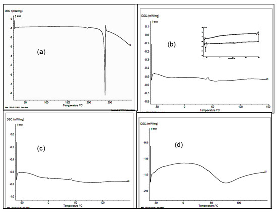 DSC thermogram of (a) blocked TDI, (b) PU-TDI-PPG-1000 (inset: two cycles), (c) PU-TDI-PPG-2000 and (d) PU-PPG-3000.