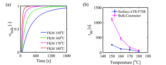 - Muroga, S.; Takahashi, Y.; Hikima, Y.; Ata, S.; Ohshima, M.; Okazaki, T.; Hata, K. New evaluation method for the curing degree of rubber and its nanocomposites using ATR-FTIR spectroscopy. Polym. Test. 2021, 93, 106993. [Google Scholar] [CrossRef]