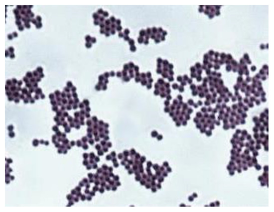 Staphylococcus aureus is a Gram-positive bacterium of spherical shape, shown in Figure 1, with the cells tending to accumulate in clusters after the division process. This bacterium is commonly found in the nose, respiratory tract and skin. It is often catalazo-positive, reduces nitrates and is an optional anaerobe that increases in the absence of oxygen.