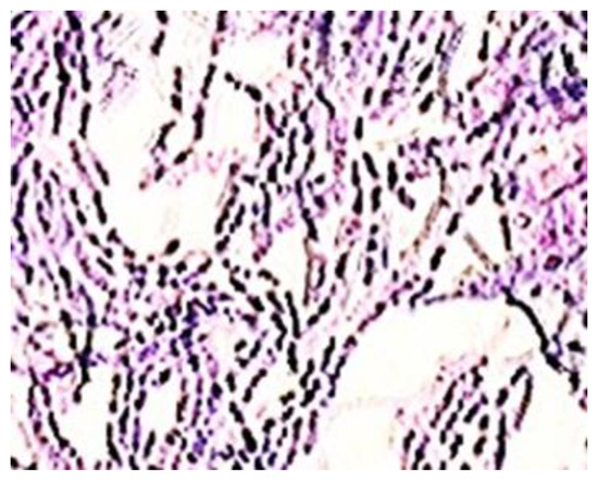 Streptococcus pyogenes, shown in Figure 2, is a Gram-positive bacterium that grows in chains and causes many infections in humans, such as: pharyngitis, tonsillitis, scarlet fever, erysipelas, rheumatic fever, etc.