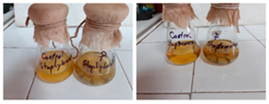 Samples and controls were incubated, shown in Figure 5, for 72 h at 37 °C under aeration and stirring conditions (200 rpm).