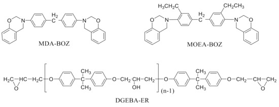 The chemical structures of MDA-BOZ, MOEA-BOZ and DGEBA-ER.
