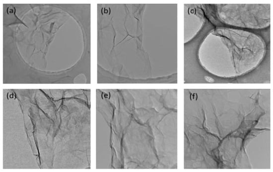 One of the most extended cycloaddition reactions with GO is the nitrene [2 + 1] [], which requires high temperatures and azide-based polymers, such as perfluoroazides, 2,4,6-tricholoro-1,3,5-triazine combined with sodium azide, or nitrene radicals arising from other organic molecules. This strategy is simple and efficient, allowing various functional moieties (e.g., hydroxyl, carboxyl, amino, bromine, long alkyl chain, etc.) and polymers (i.e., PEG, PS) to covalently and stably anchor on GO in a one-step reaction [], leading to individually dispersed, highly soluble, and conductive G nanosheets, as demonstrated by TEM analysis (Figure 1).
