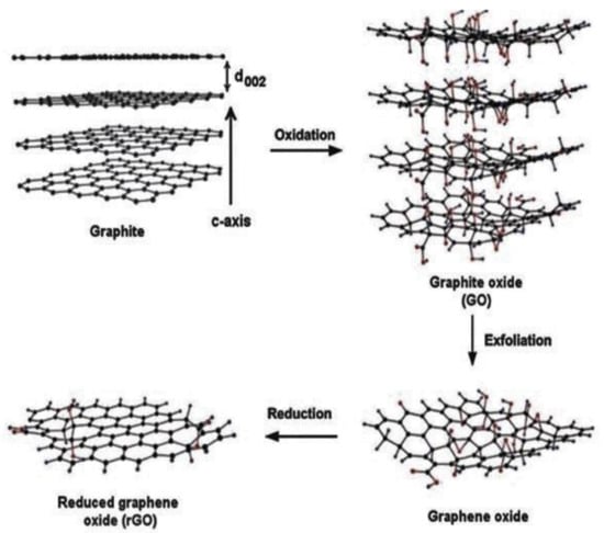 Schematic illustration of the preparation of reduced graphene oxide (rGO) from graphite. Reprinted with permission from Ref. []. Copyright 2011 WILEY-VCH Verlag GmbH & Co. KGaA, Weinheim.