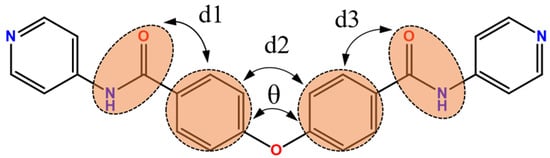 For the bpba ligand, the two C=O (or N-H) groups that are on the same and opposite directions define the cis and trans conformations, respectively [19]. Accordingly, all of the L ligands in 1–3 adopt the cis conformation. A schematic drawing defining the C-O-C (θ) angle and dihedral angle (d) is shown in Figure 2, and the angles were calculated and listed in Table 2. Clearly, although all of the L ligands in 1–3 adopt the same cis conformation, they differ in the dihedral angles, presumably due to the different metal identity.