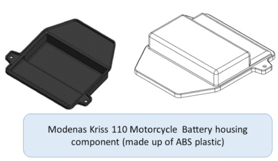 The automotive industry has traditionally placed more importance on materials with a high strength-to-weight ratio [1]. To meet this need, previous authors have worked on composite materials [2]. Many unique composite materials were developed or fabricated and used in automotive industries [3]. Both synthetic and natural polymers are used in the production of composite materials for automotive applications [4]. The use of synthetic polymers derived from petroleum sources is hazardous to the environment [5]. Motorcycles are an essential part of the automotive industry. The majority of the motorcycle’s body frame parts are composed of an Acrylonitrile Butadiene Styrene (ABS) engineering thermoplastic. ABS is a petroleum-based plastic with a high melting point, low weight, high strength, good mechanical properties, and excellent surface finish [6]. It is also not biodegradable, is not a renewable resource, and is harmful to the environment [7]. Because of the environmentally hazardous properties of ABS plastic, researchers are leaning toward biodegradable plastic to rescue the environment. Poly(lactic acid) (PLA) is an excellent choice for replacing ABS as it is a biodegradable type of plastic that is made from plant-based materials such as corn starch or sugarcane, and it is also known as ‘the green plastic’ [8,9]. Since the 2000s, efforts have been made in the field of biodegradability to commercialize PLA polymers. PLA is a recyclable, non-toxic, biobased, biodegradable, biocompatible polymer that is readily decomposable, commercially accessible, has cheap manufacturing costs, and its mechanical and physical characteristics may be modified [10]. PLA has the world’s second-highest intake rate of any bioplastic. Morao et al. [11] indicate that the manufacture and use of PLA have a very low environmental impact and they analyzed the cradle-to-gate data on the environmental footprint of PLA production. PLA’s environmental performance may be improved by improving sugarcane cultivation methods, installing better efficiency bagasse boilers at the sugar mill, reducing the use of auxiliary chemicals, and increasing the use of renewable energy in the sugar-to-PLA conversion process. Because of these properties, PLA may be used to replace petroleum polymers in a variety of biomedical, textile, plastic, 3D printing materials, and packaging applications [12,13].