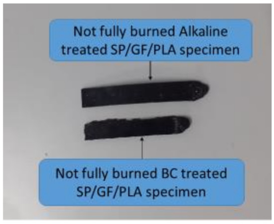 • Through the horizontal UL 94 testing, the outcome revealed that the ASP/GF/PLA hybrid composite has the highest flame resistance.