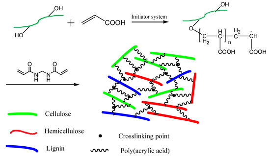 Wheat straw was collected from Xi’an city of China and ground to pass a 1 mm size screen. Hydrogen peroxide, anhydrous sodium sulfite, and potassium persulfate were produced from the Tianjin Fuchen Chemical Reagent Co. Ltd. in China. Copper sulfate pentahydrate and ditiocarb sodium were obtained from the Tianjin Kermel Chemical Reagent Company in China. Acrylic acid and N,N-methylene bisacrylamide (BIS) were provided by the Tianjin Dongli District Tianda Chemical Reagent Company (Tianjin, China). All reagents used were of analytical grade.