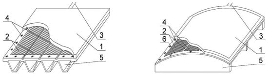 33]. The parameters of the heating system (material of the heating elements, their geometry, and material of the insulating system) and the diagram of its connection were determined from the condition of securing the required heating mode. The heating was controlled by changing the current strength during the process, determined from the solution of the heat conduction problem, taking into account the exothermic effect of the curing reaction and conditions of heat transfer on the surface.