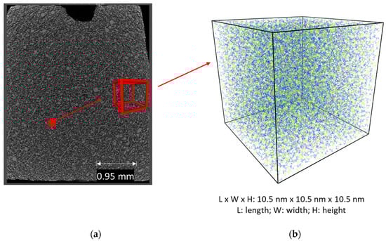 Macro- and micro-structure of the epoxy resin: (a) Nano-CT of the epoxy resin, and (b) view of simulation cell in molecular dynamics simulation.