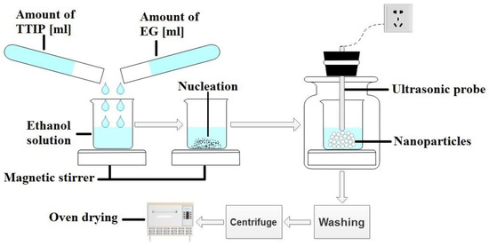 | Sample | Amount of TTIP [mL] | Amount of EG [mL] | Sonication Time [h] |