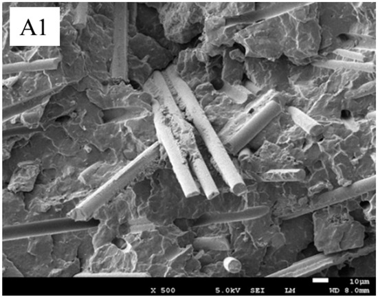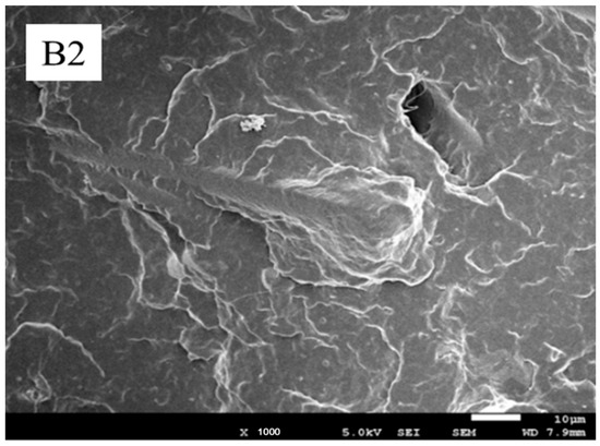 SEM images for fracture surface of impact specimen. (A) Before modification and (B) After modification.