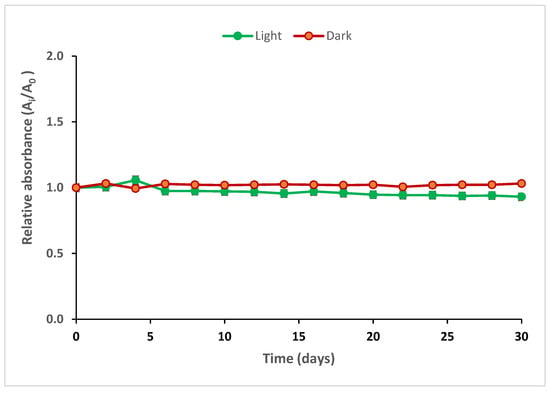 Figure 1 shows the excellent stability of the different films stored at variable times. Irradiated nanocomposite films exhibited good stability both in light and dark storage conditions for 30 days.