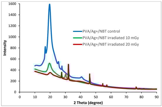 XRD patterns of control and irradiated PVA/Ag+/NBT nanocomposite films.