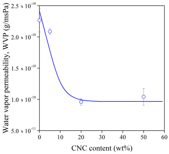 Water vapor permeability of TPS–CNC composites with 30% glycerol as a function of CNC content.