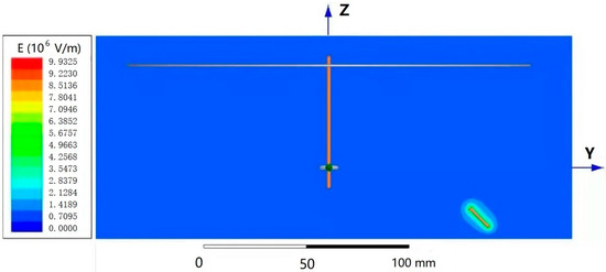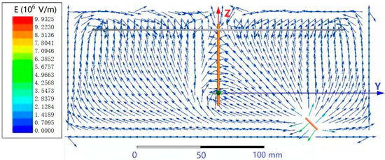 As shown in Figure 4, the peak electric field intensity appears near the needle, and the electric field intensity vectors of the needle nearly all pointed to the receiving disk and ring, in accordance with experimental phenomena.