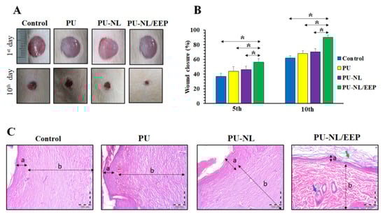 - Lee, S.M.; Park, I.K.; Kim, Y.S.; Kim, H.J.; Moon, H.; Mueller, S.; Jeong, Y.-I. Physical, morphological, and wound healing properties of a polyurethane foam-film dressing. Biomater. Res. 2016, 20, 15. [Google Scholar] [CrossRef] [PubMed] [Green Version]