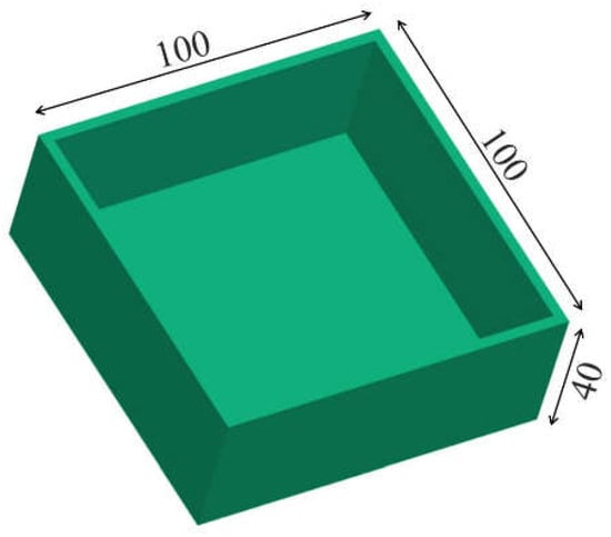 For the simulations, the commercial injection molding software Autodesk Moldflow Insight 2016 (Autodesk, San Rafael, CA, USA) was used. The investigated test part had a box shaped geometry with a bottom area of 100 by 100 mm2 and a height of 40 mm (Figure 1). The thickness was varied with either 1 or 3 mm for the whole part to see the thickness influence on the results.