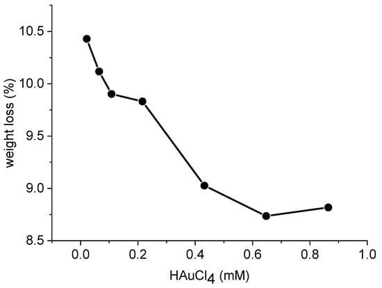 Dependence of weight loss of as-prepare films obtained from solution with different HAuCl4 concentration.
