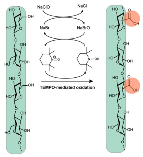 - Pierre, G.; Punta, C.; Delattre, C.; Melone, L.; Dubessay, P.; Fiorati, A.; Pastori, N.; Galante, Y.M.; Michaud, P. TEMPO-mediated oxidation of polysaccharides: An ongoing story. Carbohydr. Polym. 2017, 165, 71–85. [Google Scholar] [CrossRef] [PubMed] [Green Version]