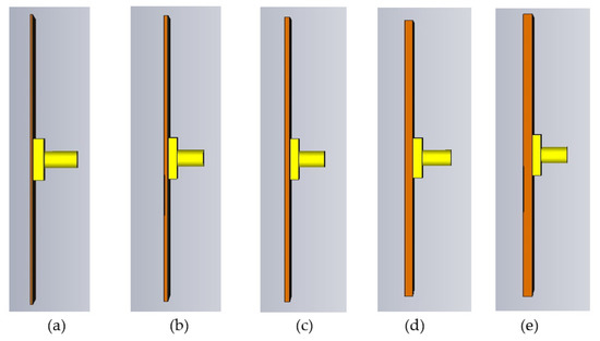 Figure 7. PDMS-Ferrite substrate thickness; (a) 0.4 mm, (b) 0.8 mm, (c) 1.2 mm, (d) 1.6 mm and (e) 2.0 mm.