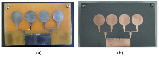 Figure 11. Comparison of fabricated antenna sensors (a) Magnetite PDMS Graphene Arraysensor and (b) Copper-Taconic sensor.