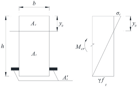 The section resistance moment plasticity influence coefficient was used to reflect the elasticplastic development degree in the tensile zone of the beam. The cracking moment formula is established by the principle of material mechanics. The formula for calculating the cracking moment is shown in Equation (3)