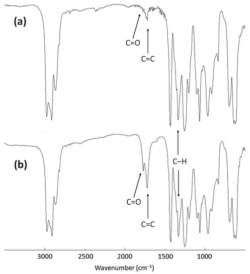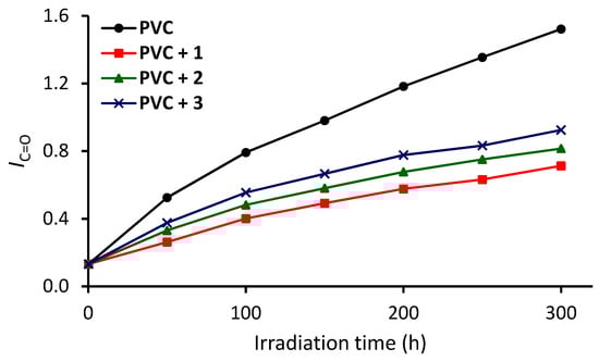 3.2. Investigation of PVC Photodegradation through FTIR Spectrophotometry