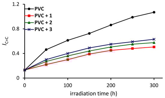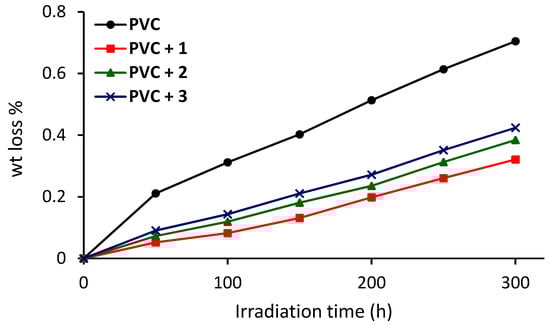 3.3. Investigation of PVC Photodegradation through Weight Loss