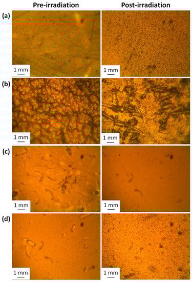 - Ahmed, A.A.; Ahmed, D.S.; El-Hiti, G.A.; Alotaibi, M.H.; Hashim, H.; Yousif, E. SEM morphological analysis of irradiated polystyrene film doped by a Schiff base containing a 1,2,4-triazole ring system. Appl. Petrochem. Res. 2019, 9, 169–177. [Google Scholar] [CrossRef] [Green Version]