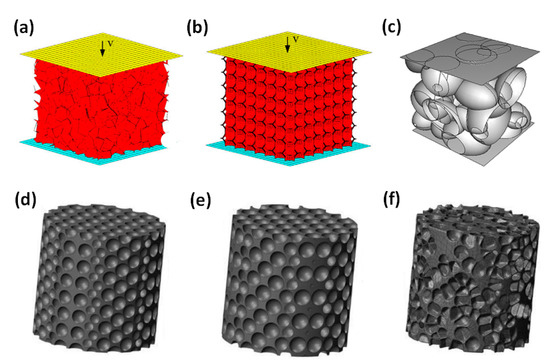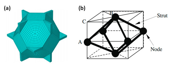 On this basis, researchers developed tetradecahedron models (Kelvin model) [113,114,115] and octahedron models [116,117,118], as shown in Figure 6. These single cell models provide an easy method to analyze the mechanical properties, but the simple shape and regular permutation of them are too idealistic and far from the realistic structure. They cannot represent the mechanical properties of the entire cellular medium.