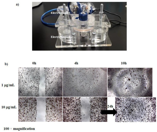 3.4. Cell Migration Assay under Magnetic Fields