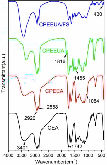 w on the weight of CFA), dropwise under continuous stirring. After the complete addition of TDI, the reaction temperature was increased to 60 °C, and the reaction was continued until the FTIR spectrum indicated the formation of polyurethane (
