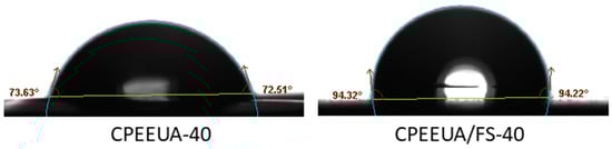 Surface wettability of CPEEUA-40 and CPEEUA/FS-40 was studied by contact angle (