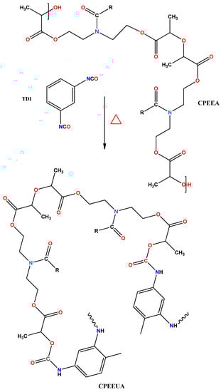 w on the weight of CFA) was added with gradual mixing to the calculated amount of CPEEA, followed by the addition of TDI (35, 40, 45%