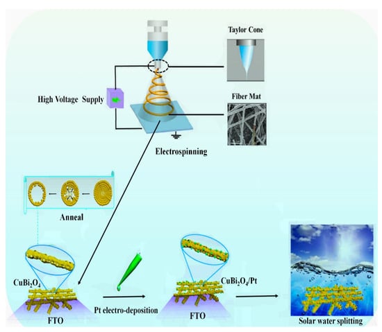 - Yang, J.; Du, C.; Wen, Y.; Zhang, Z.; Cho, K.; Chen, R.; Shan, B. Enhanced photoelectrochemical hydrogen evolution at p-type CuBi2O4 photocathode through hypoxic calcination. Int. J. Hydrogen Energy 2018, 43, 9549–9557. [Google Scholar] [CrossRef]