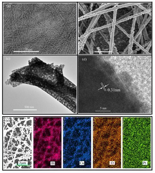 2.2. Preparation of Porous CuBi2O4/Pt Nanofiber Film