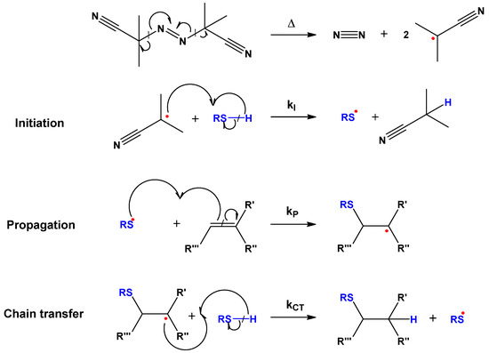Proposed mechanism for AIBN-initiated thiol-ene reaction.