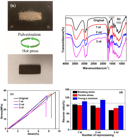 - Wang, T.X.; Chen, H.M.; Salvekar, A.V.; Lim, J.; Chen, Y.; Xiao, R.; Huang, W.M. Vitrimer-Like Shape Memory Polymers: Characterization and Applications in Reshaping and Manufacturing. Polymers 2020, 12, 2330. [Google Scholar] [CrossRef] [PubMed]