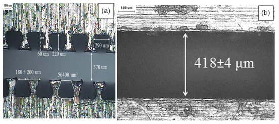 Textured films were then melt-extruded through a die with trapezoid-shaped cavities that were 220 ± 9 µm high, as shown in Figure 1a Control samples, i.e., non-textured films, were melt-extruded from a flat die with a width of ~420 µm, as shown in Figure 1b. Both textured and non-textured samples with a BN content of 0, 1, 5, 10, 20, and 30 vol% (LLDPE, BN1, BN5, BN10, BN20, and BN30) were prepared.