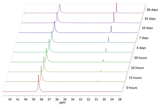The 31P NMR spectra of p(PEtEPMA) in alkaline solution (pH ~ 10) at different times.