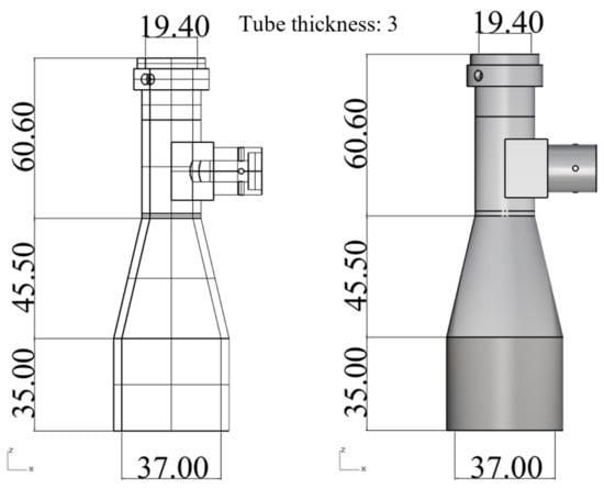 Among these components, the telecentric barrel plays a critical role in ensuring that the light emitted by the coaxial light source follows the preset path. In particular, the roundness and concentricity of the barrel must be strictly controlled in order to ensure a proper placement and alignment of the internal lens [13,14,15,16,17,18]. The lens barrel is generally fabricated from plastic material due to the latter’s light weight and ease of manufacturing. However, as shown in Figure 1, the barrel has a varying tube diameter and an asymmetric geometry (due to the presence of the holder). Thus, controlling the injection molding parameters in such a way as to minimize the roundness and concentricity errors caused by the shrinkage and deformation of the barrel during the molding process represents a significant challenge [19,20].