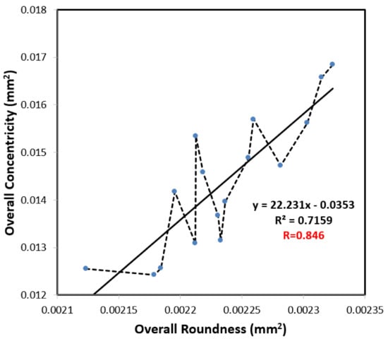 Analysis diagram of the correlation between overall roundness and overall concentricity.