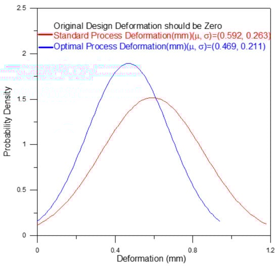 Deformation improvement of the optimal process compared to the standard process.