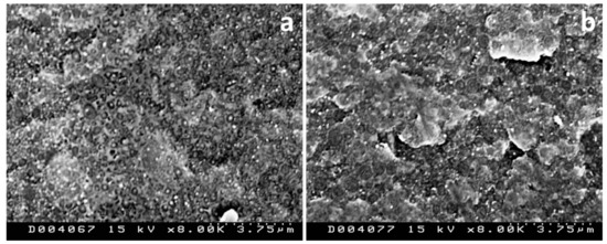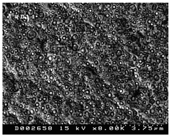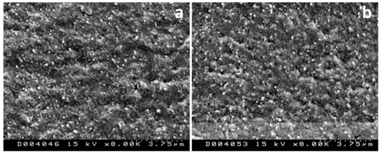 Cryogenically fractured surfaces of tensile specimens were observed by scanning electron microscopy (SEM) after gold coating. A Hitachi S-2700 electron microscope (Fukuoka, Japan) was used at an accelerating voltage of 15 kV.