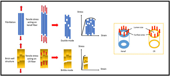 Schematic illustration of tensile fracture on CR and kenaf fiber.