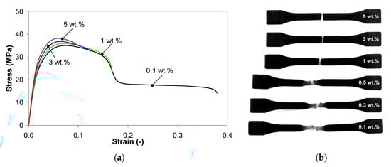 - Ganß, M.; Stapathy, B.K.; Thunga, M.; Weidisch, R.; Potschke, P.; Jehnichen, D. Structural interpretations of deformation and fracture behavior of polypropylene/multi-walled carbon nanotube composites. Acta Mater. 2008, 56, 2247–2261. [Google Scholar] [CrossRef]
