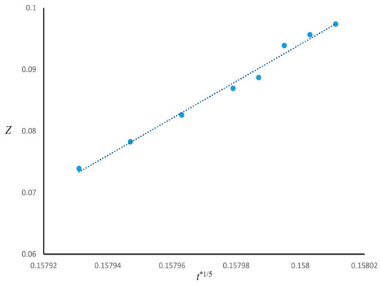 L┴, grew with time based on a power-law function, where the exponent was found as 1/3 (for