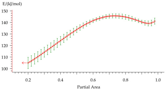 Activation energy was calculated by the Friedman method [44] consisting of plotting the dependence (5) of the logarithmic Equation (6), where the slope of the linearized curve provided the activation energy. The resulting dependency is represented in Figure 11.