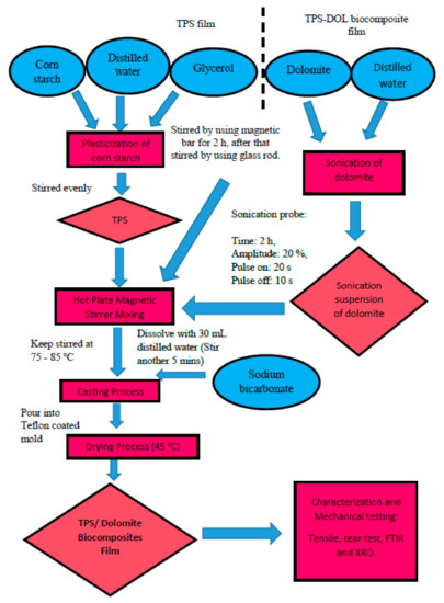 Improving the Tensile and Tear Properties of Thermoplastic Starch/Dolomite Biocomposite Film through Sonication Process